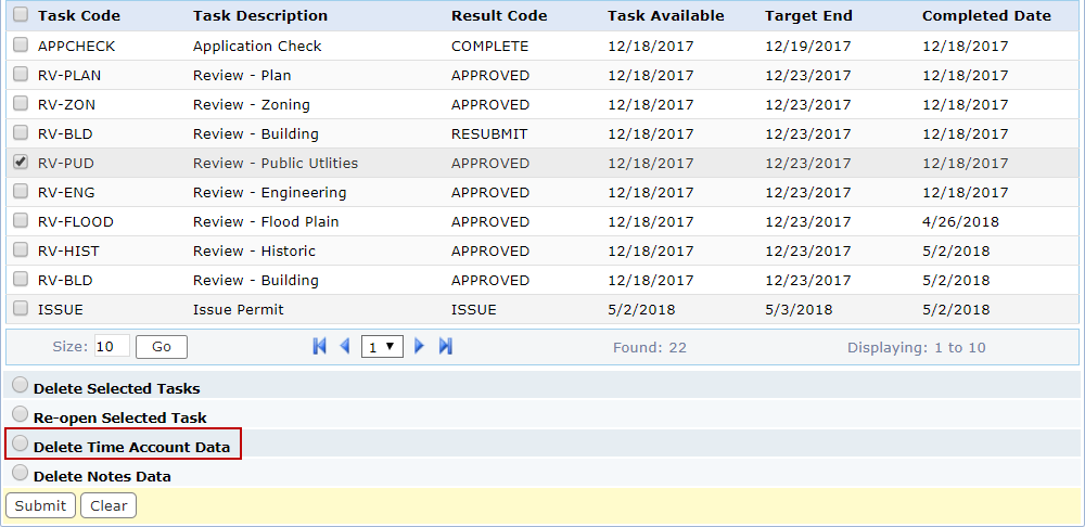 Delete Time Accounting